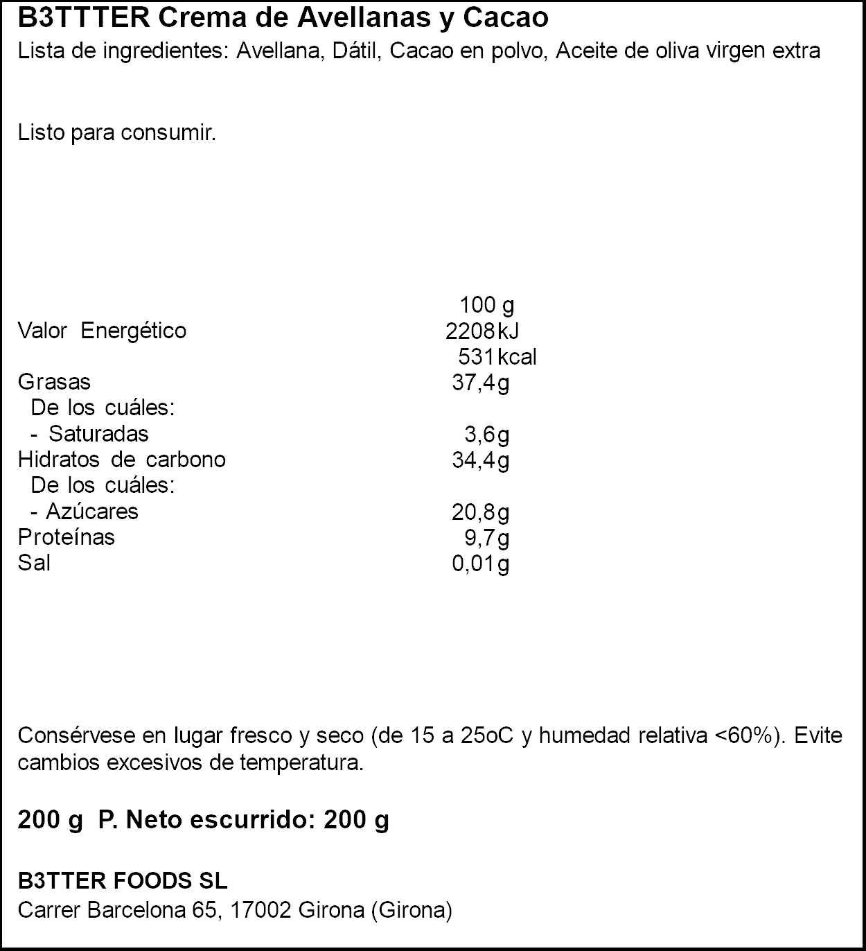 B3TTER CREMA CACAO/AVELLANES 200GR