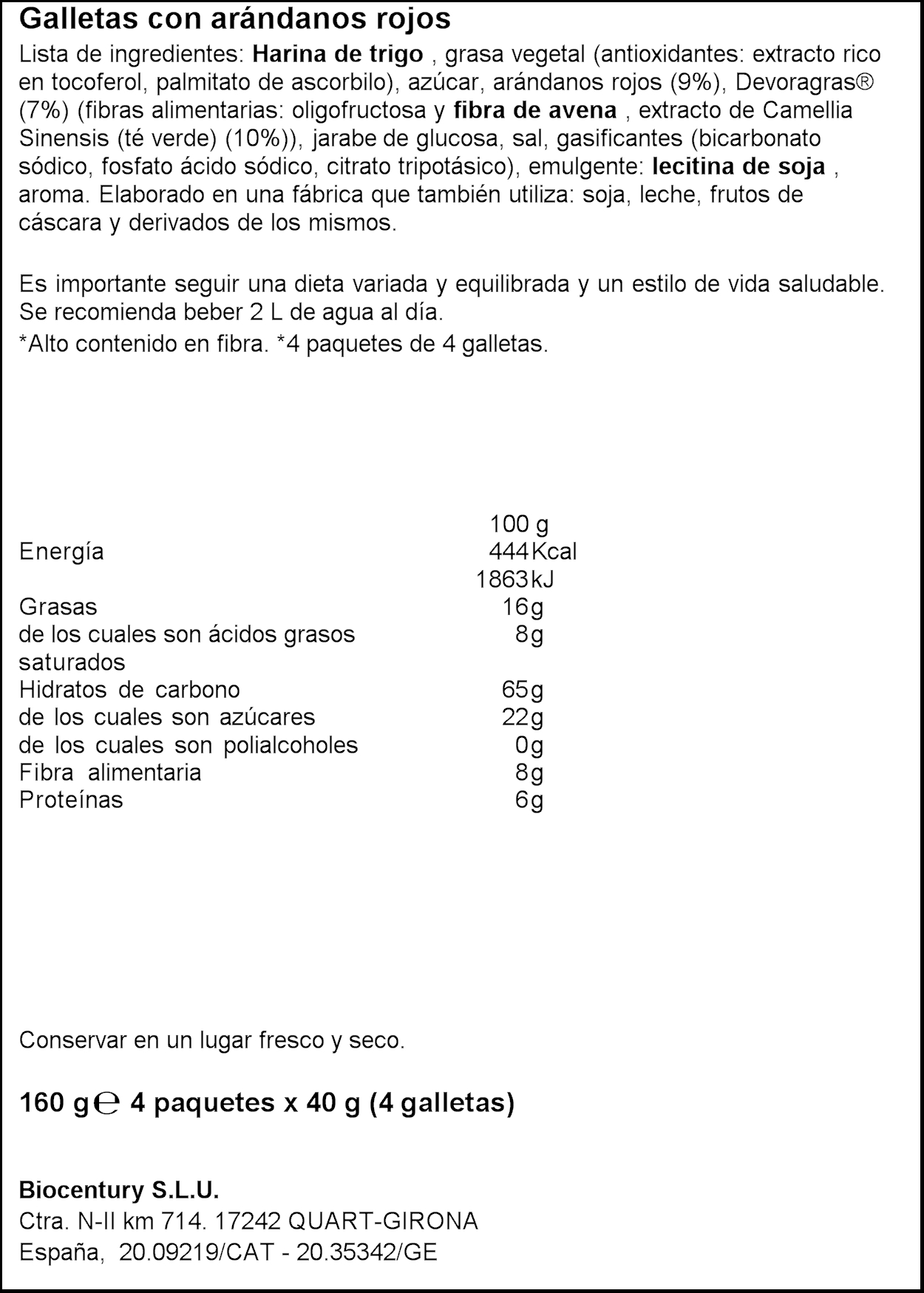 BICENTURY GALETES FRUITS VERMELLS 160GR
