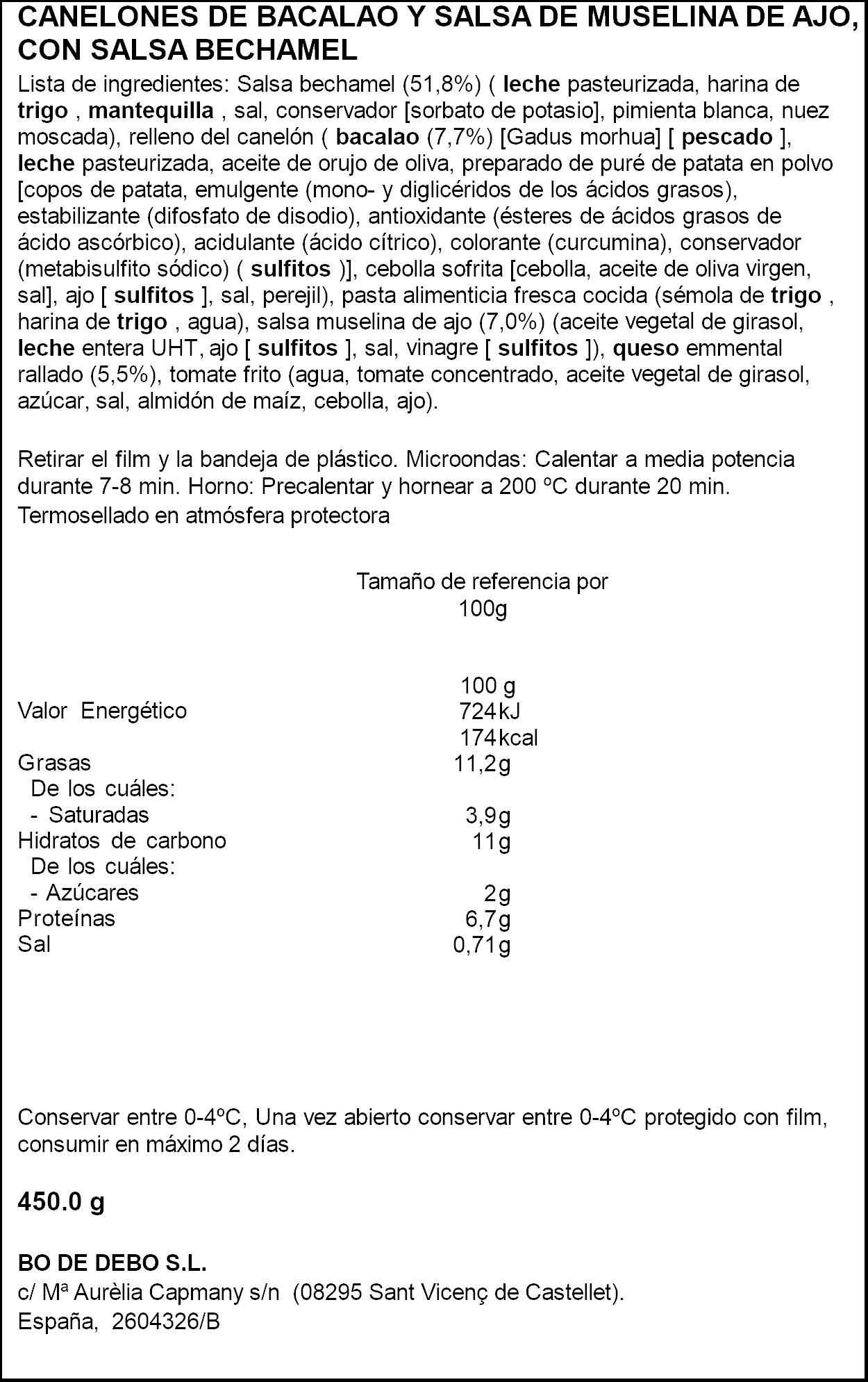 BO DE DEBO CANELONS BACALLA A MUSSOLINA ALL x3