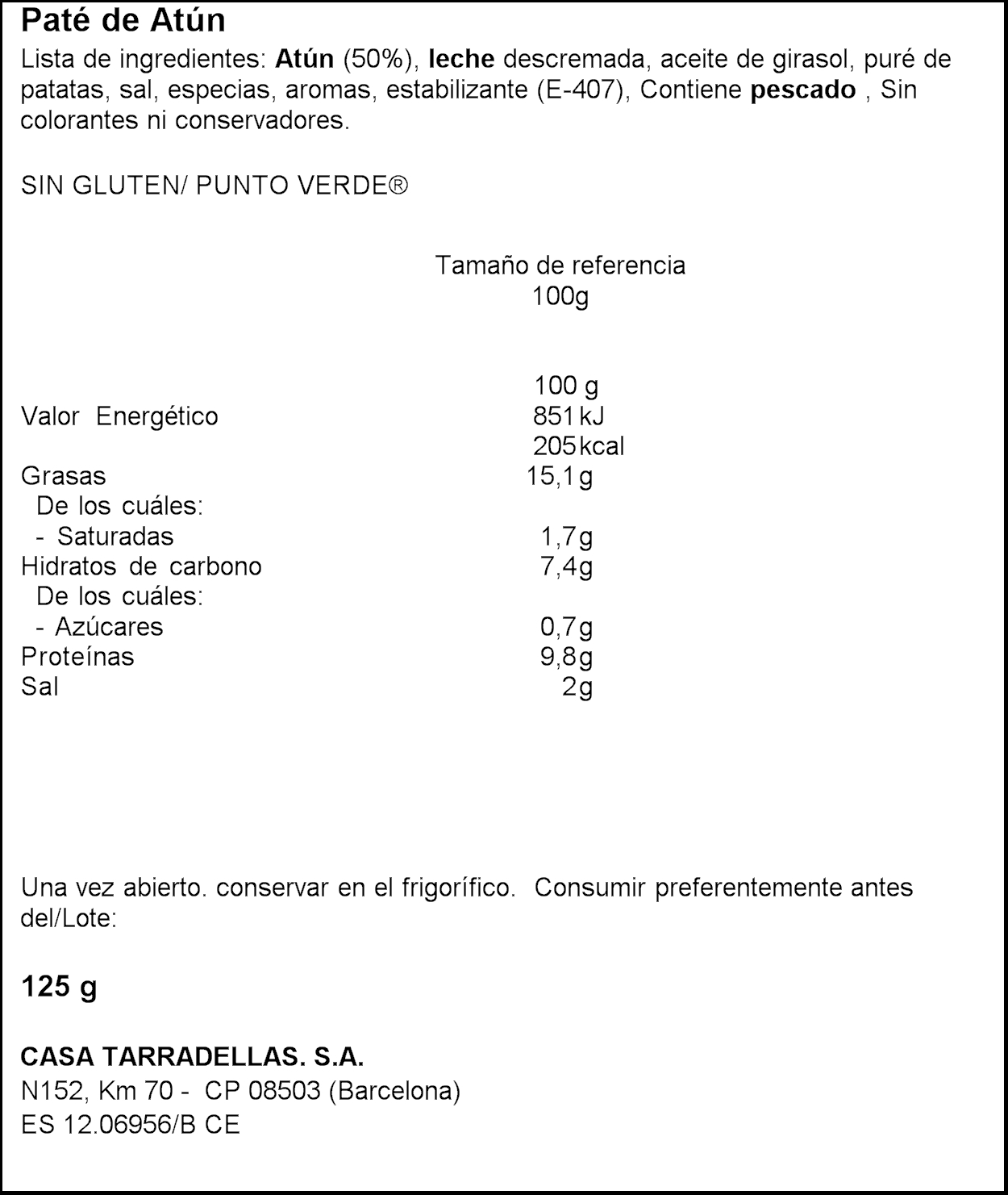 C. TARRADELLAS PATÉ TONYINA 125GR