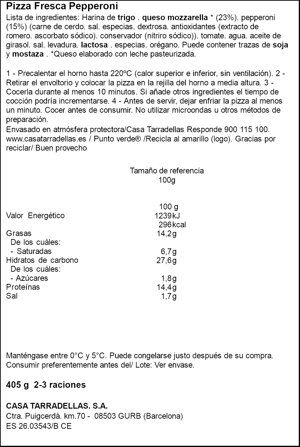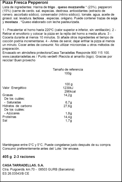 C. TARRADELLAS PIZZA PEPPERONI 400GR