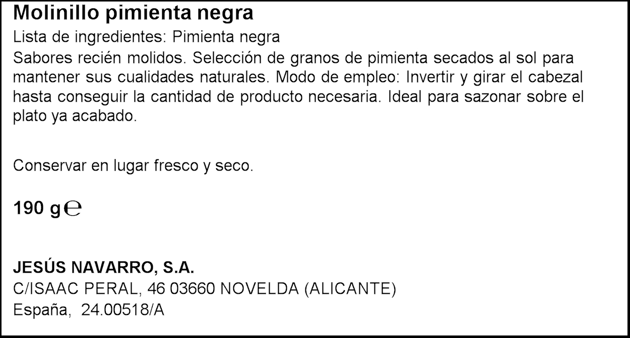 CARMENCITA MOLINET GEGANT PEBRE NEGRE 190GR