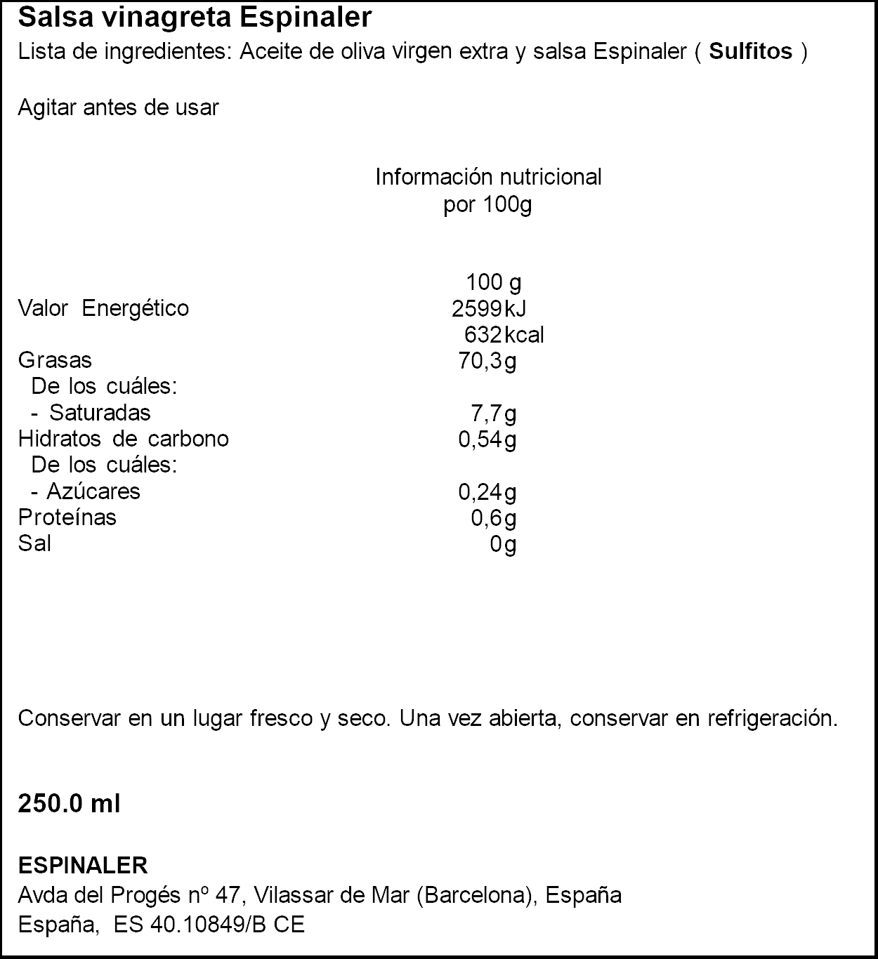 ESPINALER SALSA VINAGRETA MEDITERRANIA 250ML