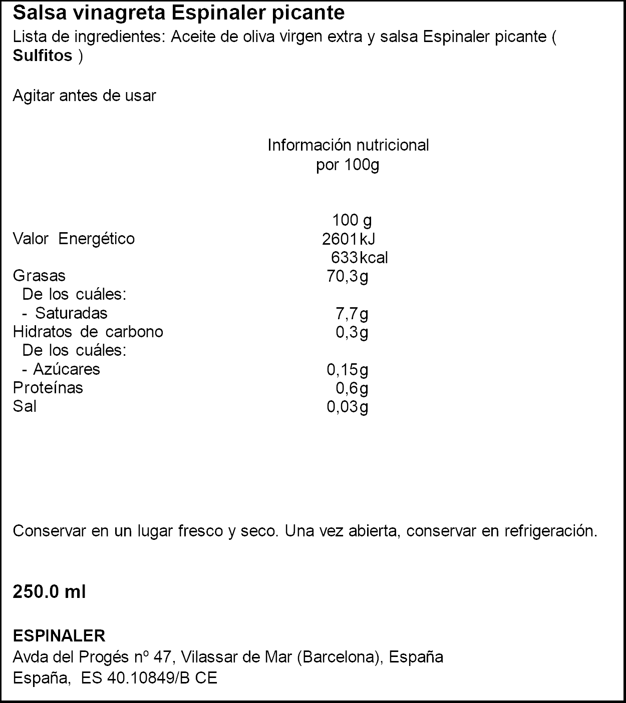 ESPINALER SALSA VINAGRETA MEDITERRANIA PICANT 250ML