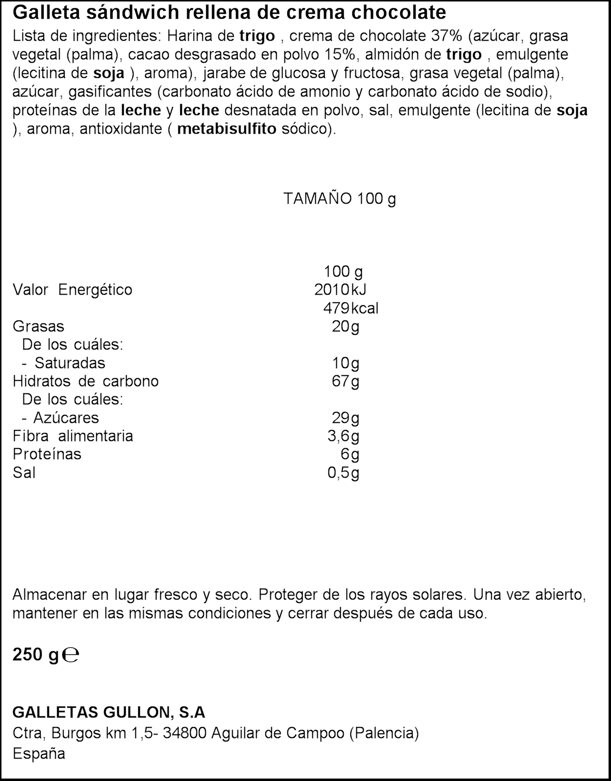 FAVORITA GALETES AMB CREMA DE XOCOLATA 250GR