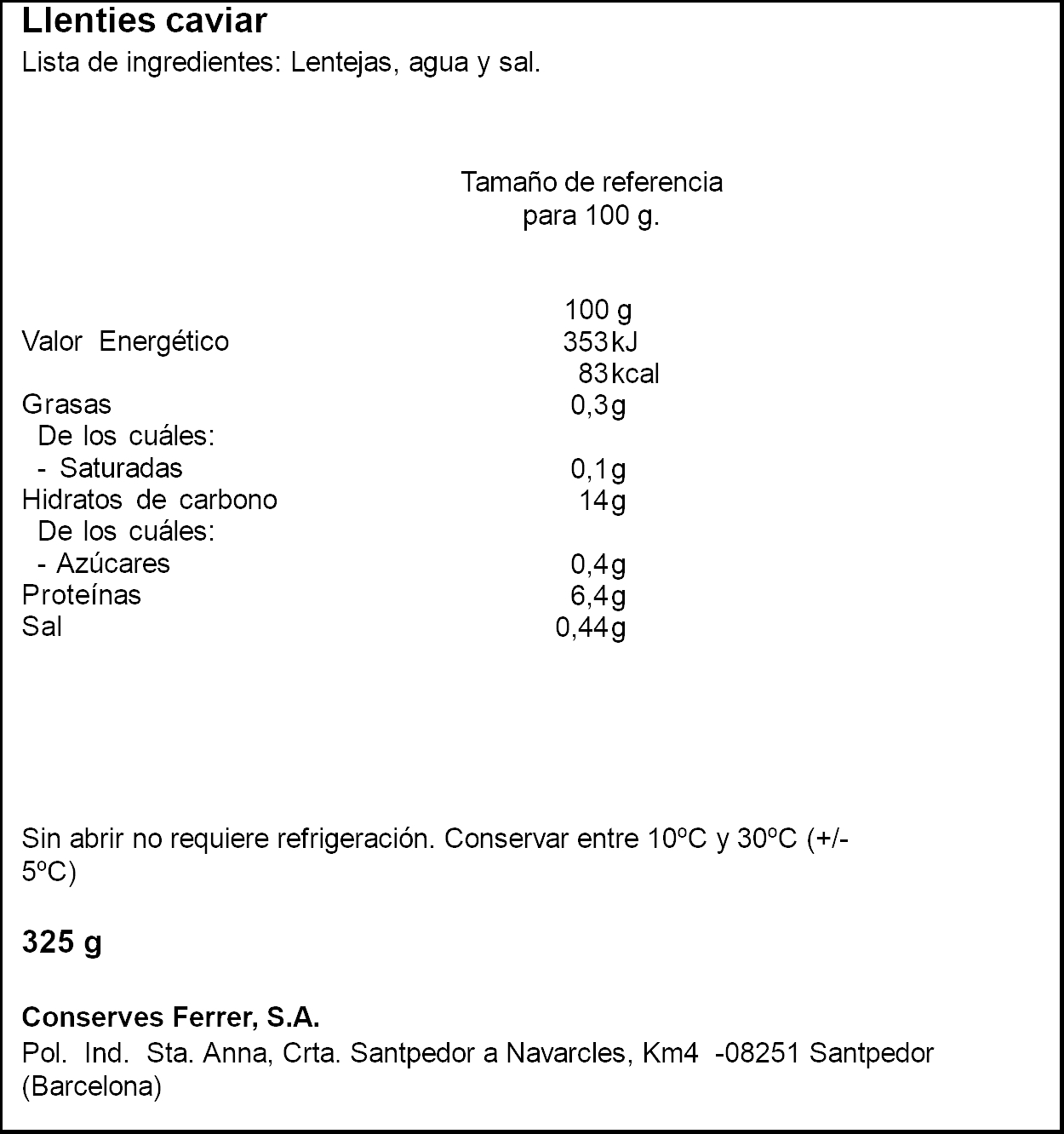 FERRER LLENTIES SELECCIO CAVIAR 325GR