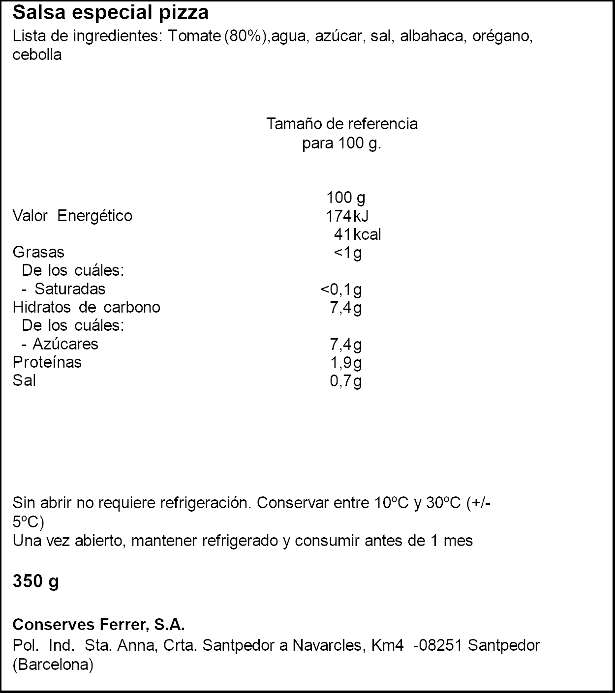 FERRER TOMÁQUET PIZZA 350GR