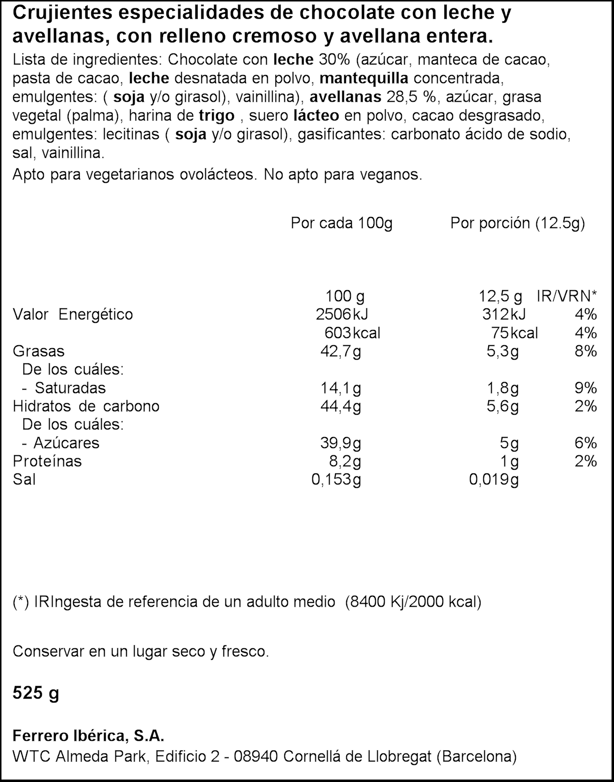 FERRRERO ROCHER BOMBONS DE XOCOLATA AMB AVELLANES 42X525GR