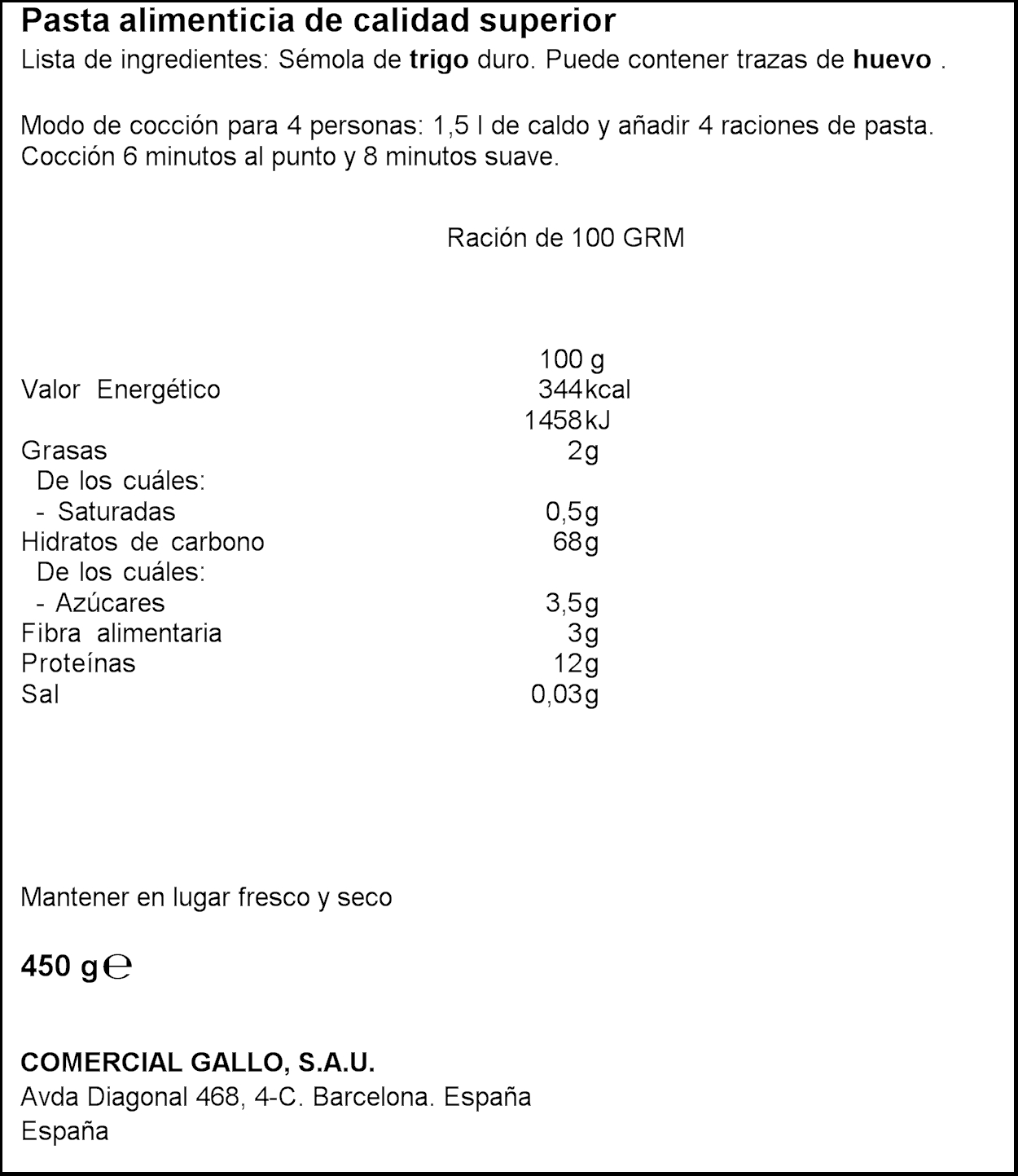 GALLO PASTA PINYONS 450GR