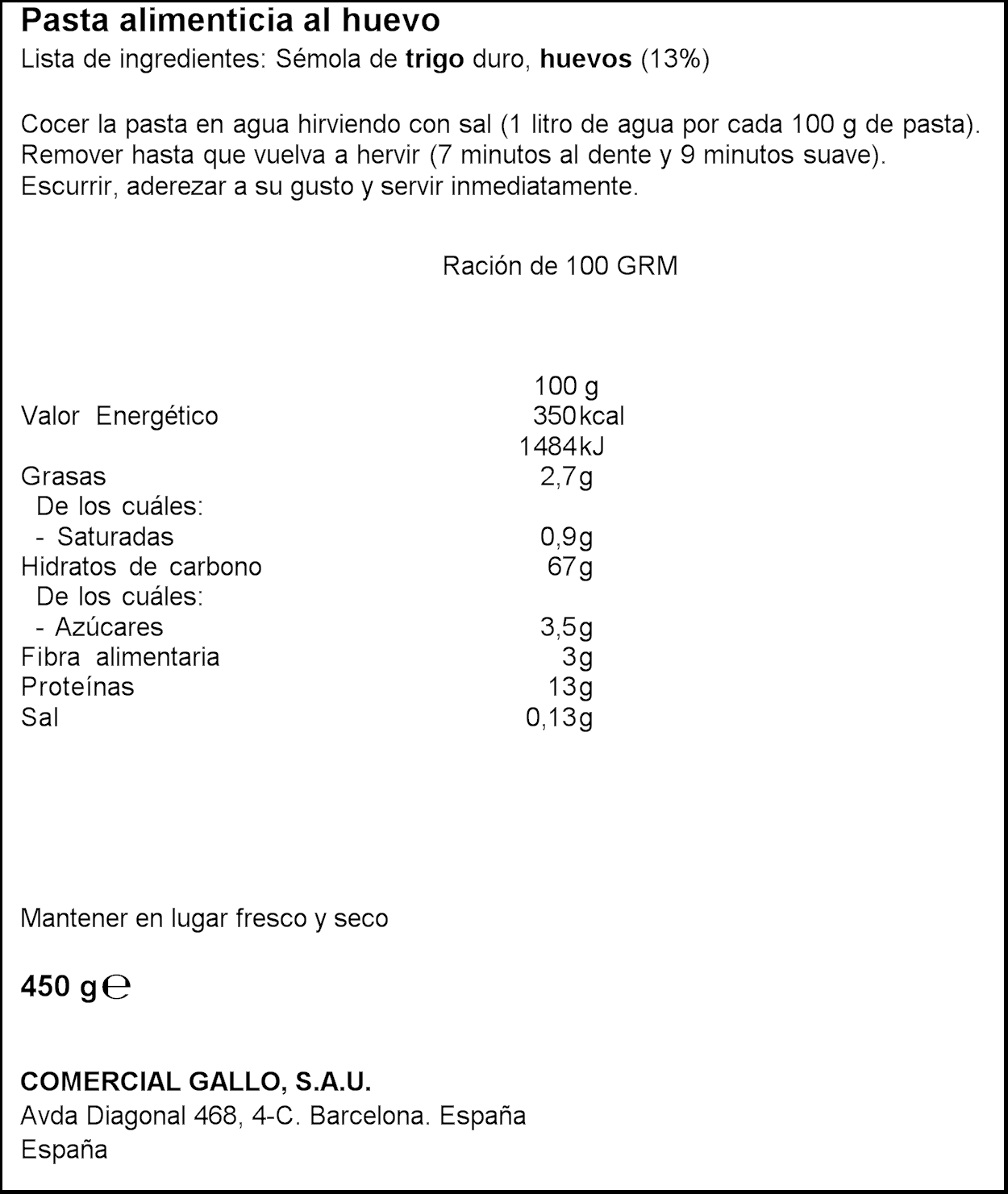GALLO SPAGUETTI A/OU 450GR