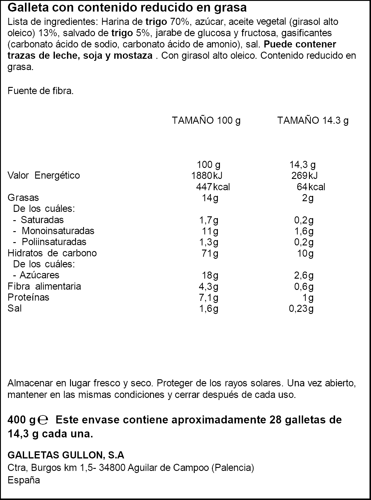 GULLON GALETES DIGESTIVE -33% GREIX 400GR