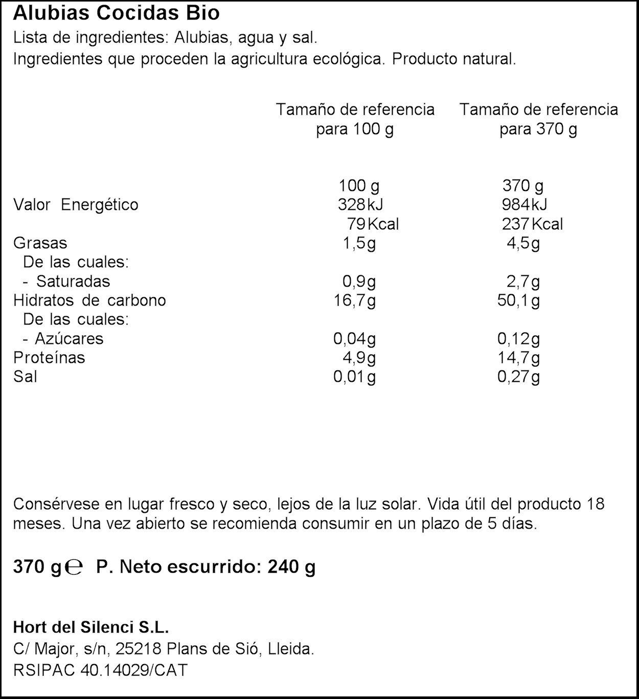 H.DEL SILENCI MONGETES CUITES BIO 370GR