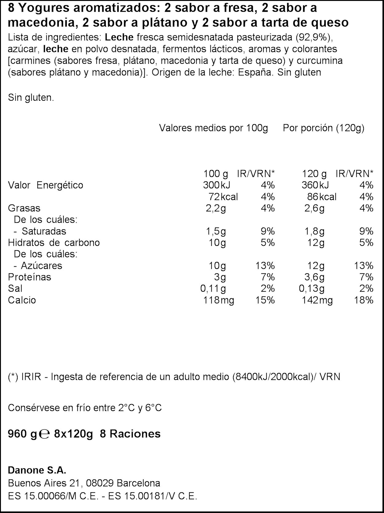 DANONE IOGURT SABORS VARIATS 8X125GR
