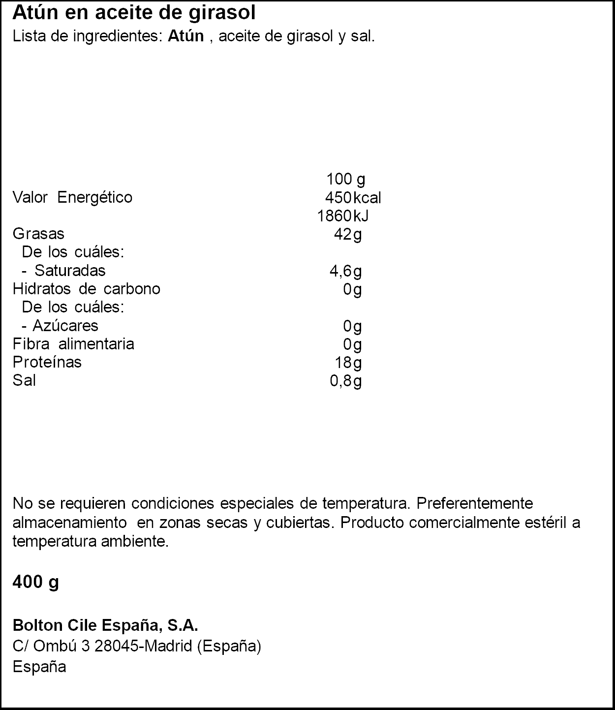 ISABEL TONYINA EN OLI GIRASOL 400GR