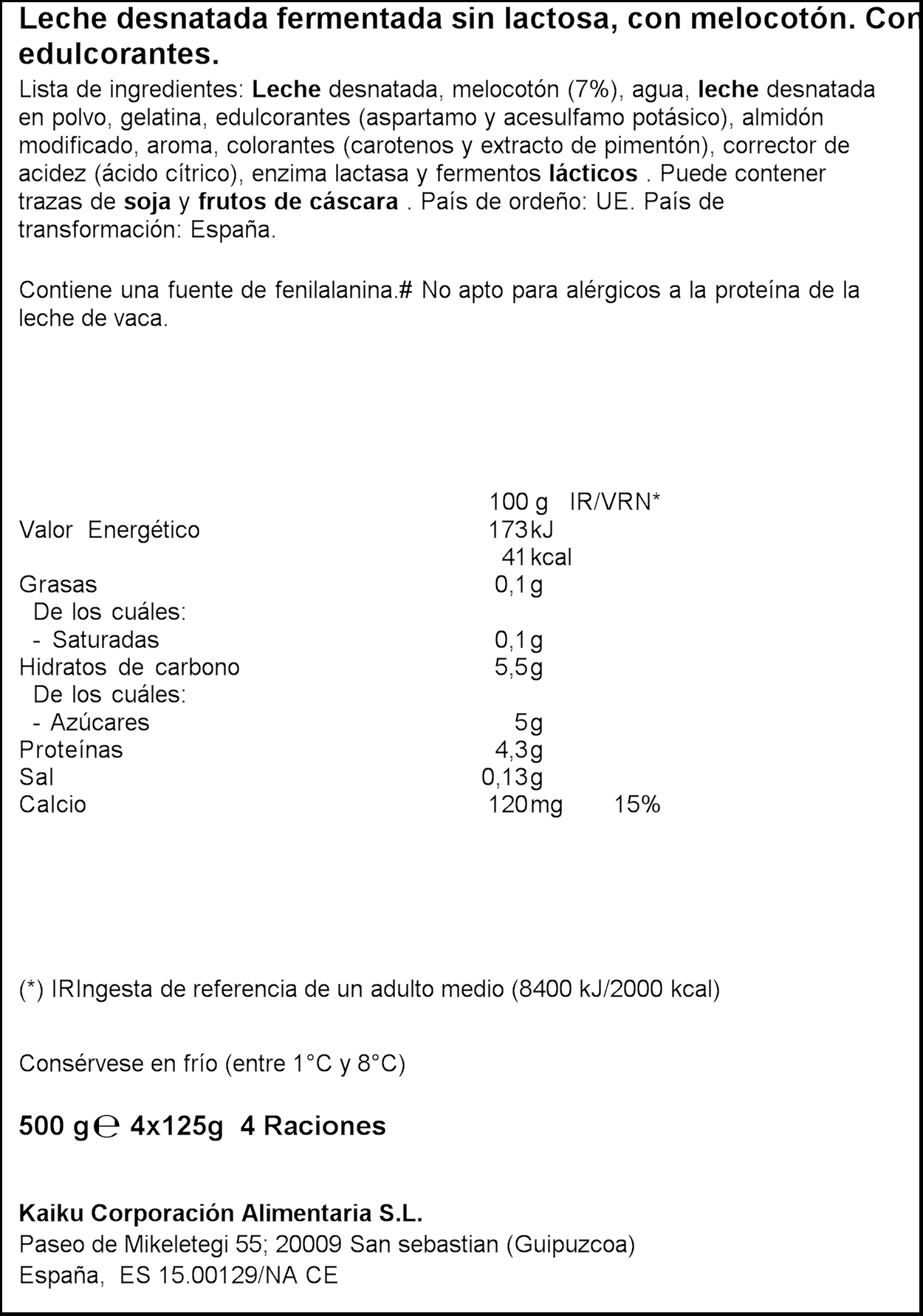 KAIKU IOGURT S/LACTOSA PRESSEC DESNATAT 4X125GR