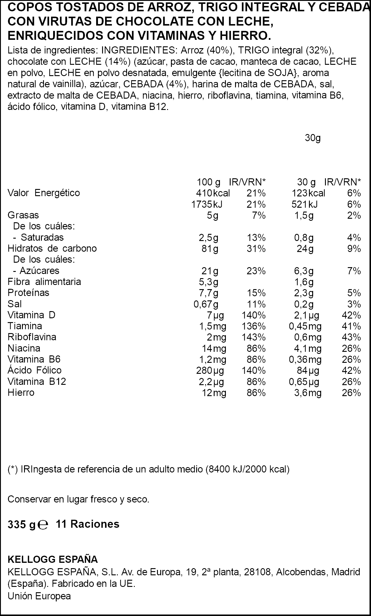 KELLOGG´S SPECIAL K XOCO/LLET 335GR