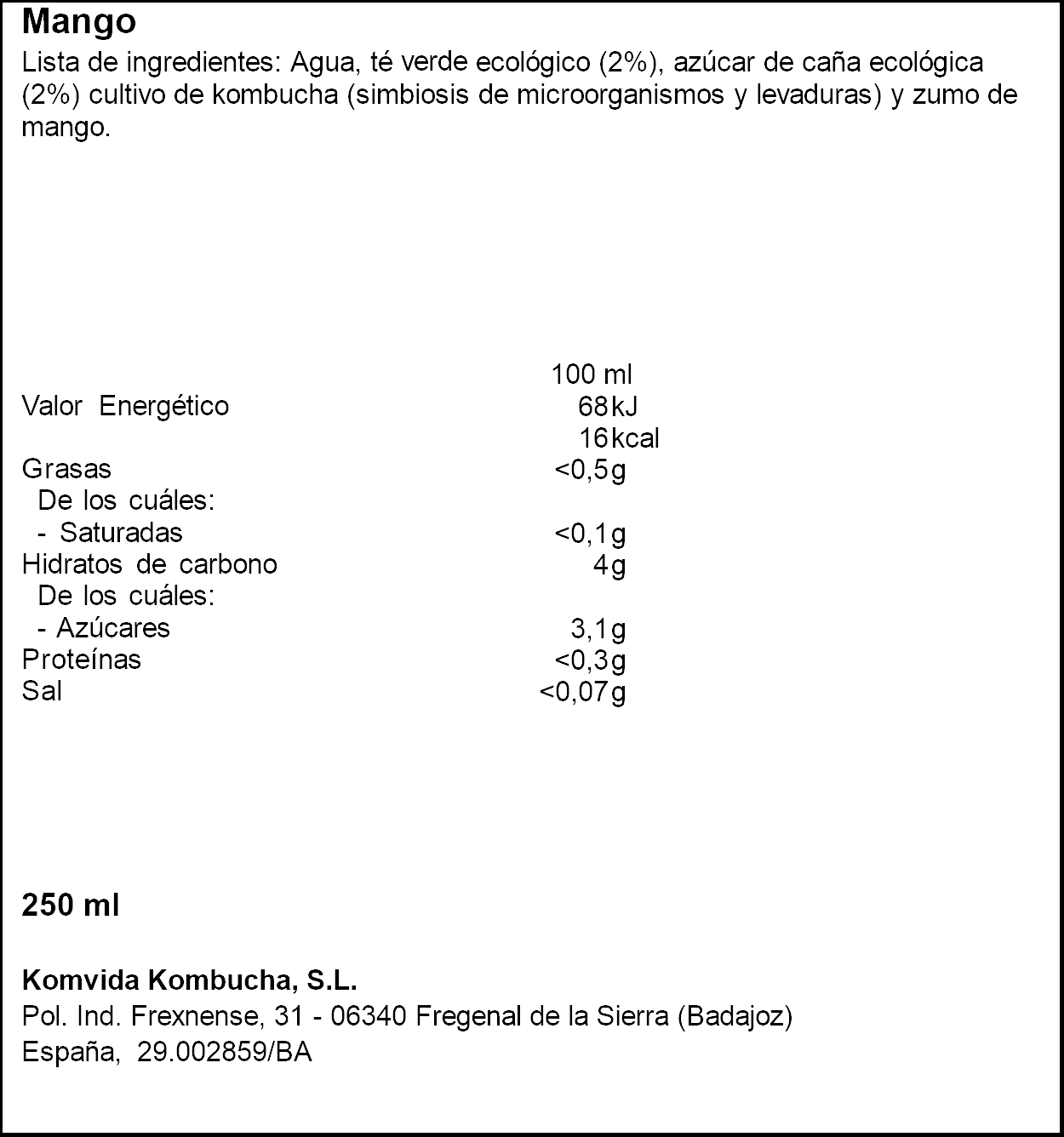 KOMVIDA KOMBUCHA MANGO 250ML