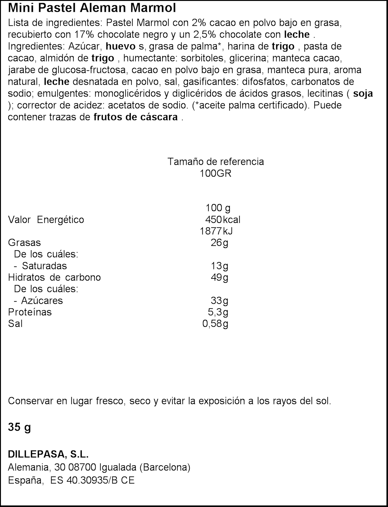 KUCHENMEISTER MINI PASTÍS ALEMANY MARMOL 35GR
