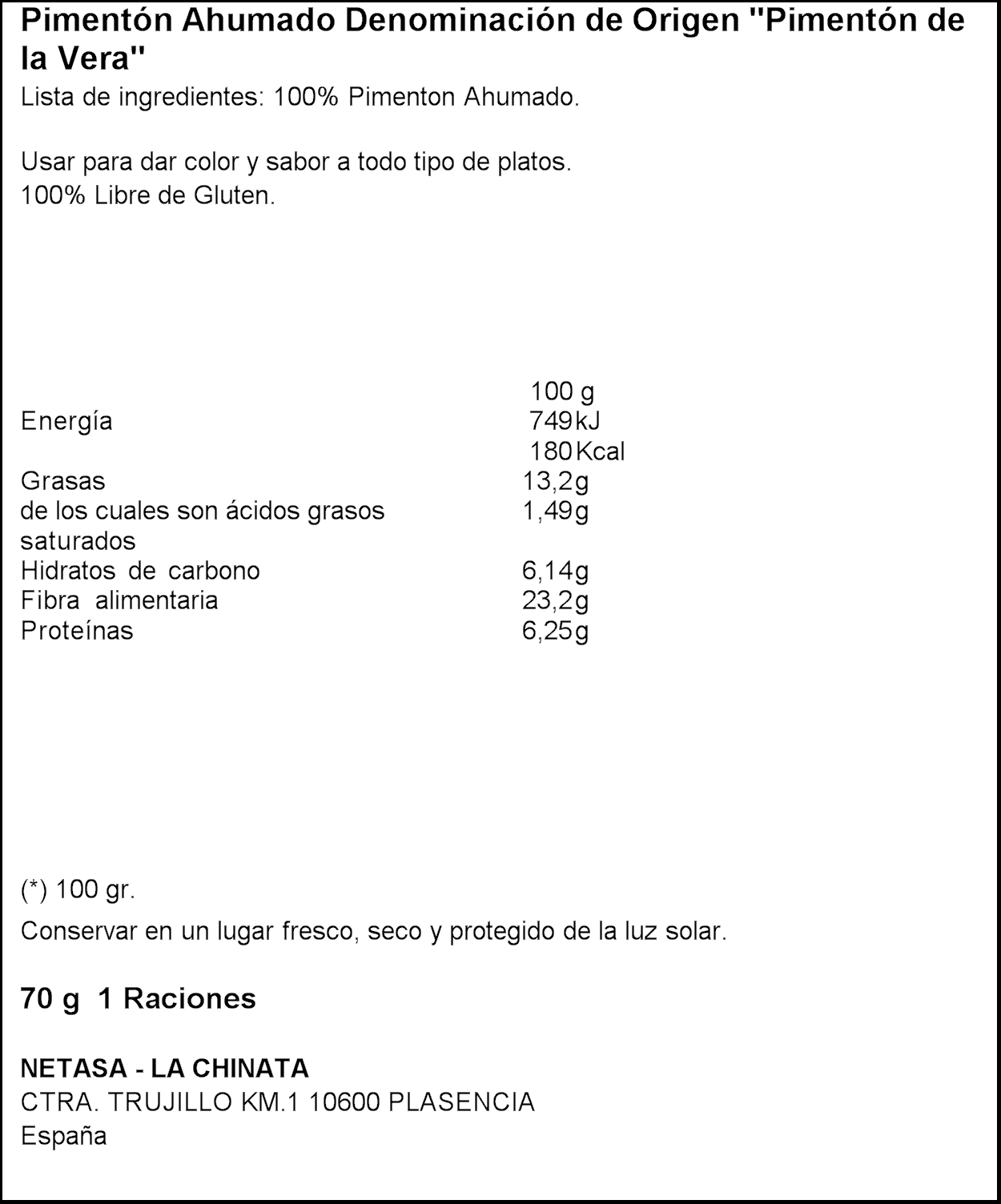 LA CHINATA PIMENTÓ LA VERA DOLÇ 70GR LLAUNA