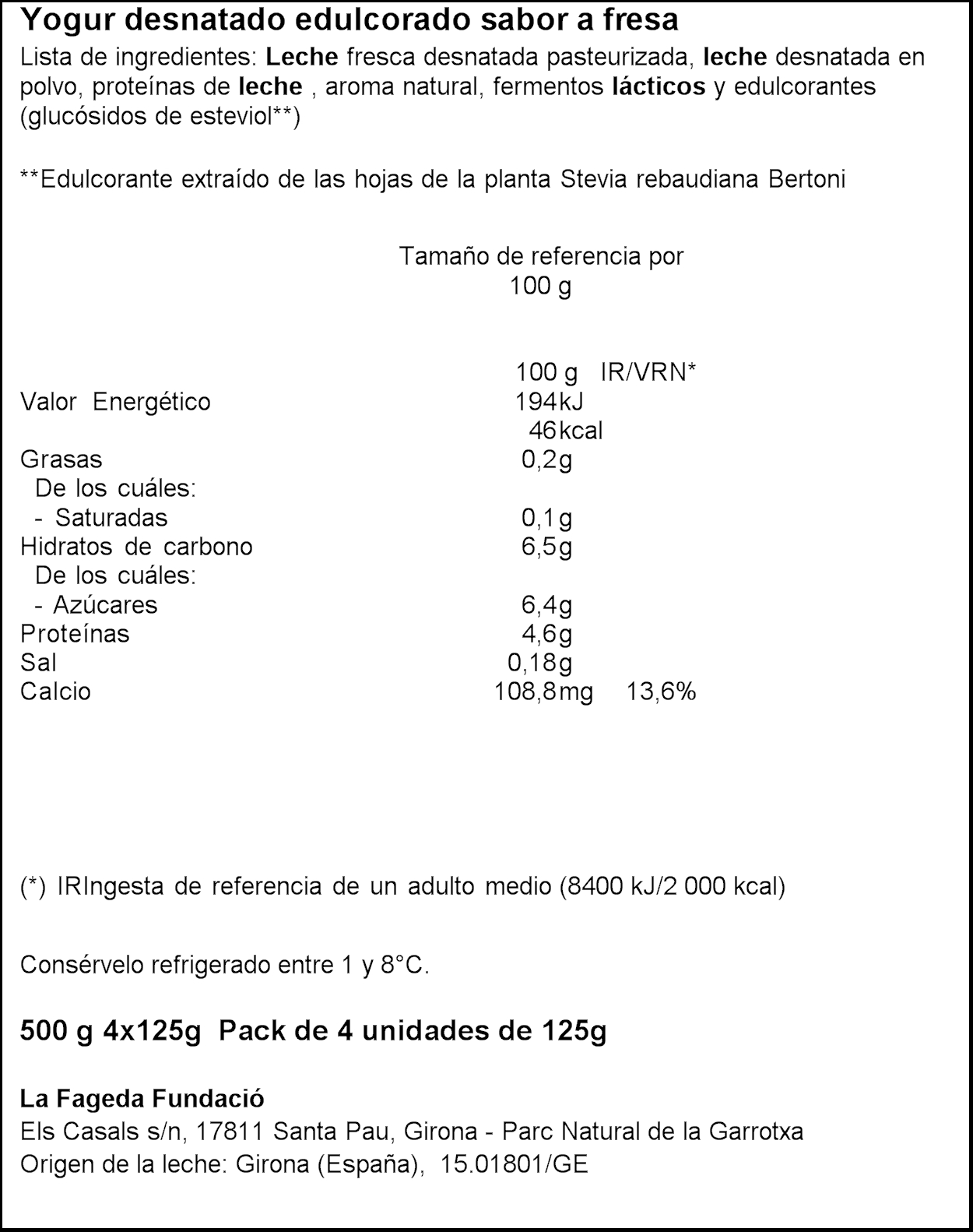 LA FAGEDA IOGURT MADUIXA DESNATAT 4X125GR