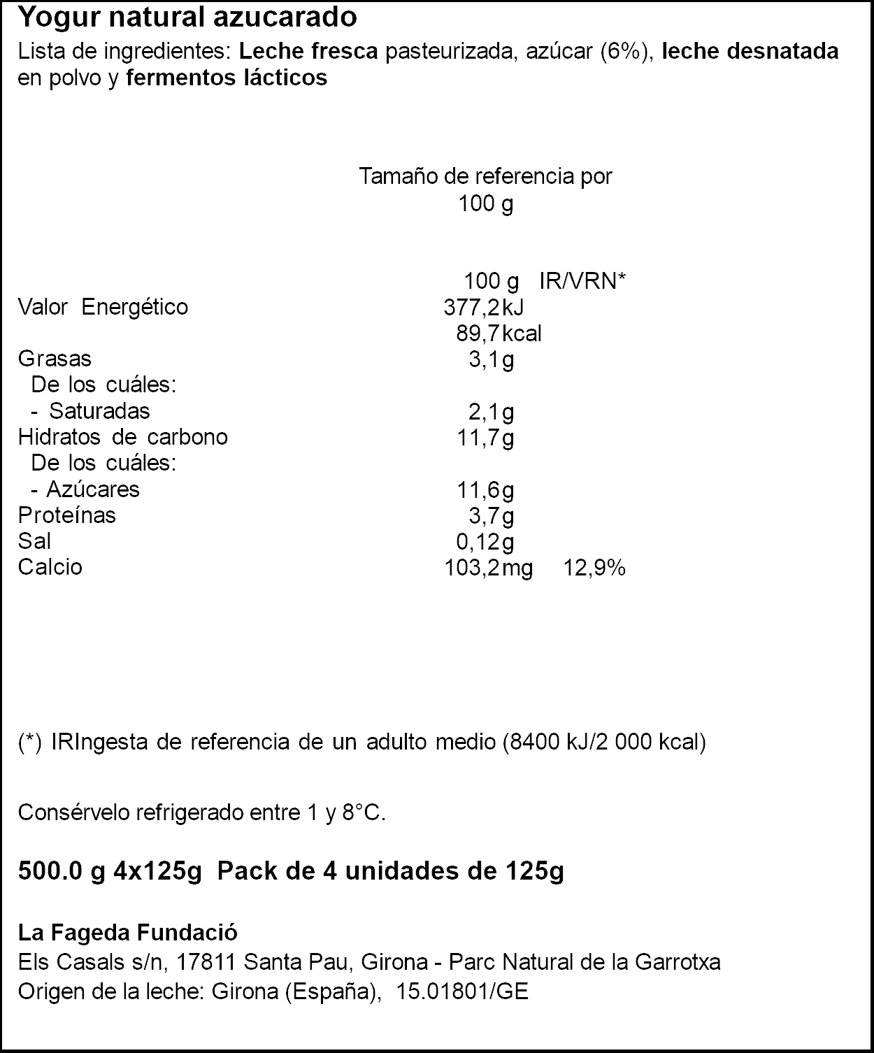LA FAGEDA IOGURT NATURAL ENSUCRAT 4X125GR