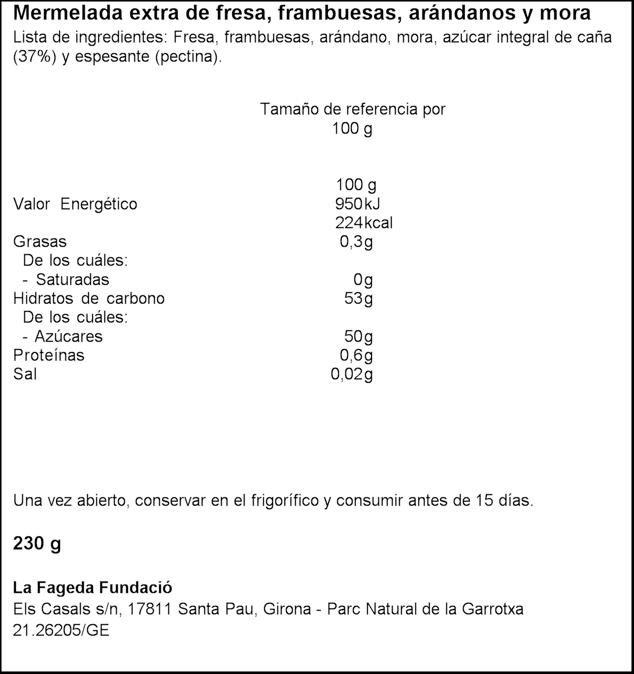 LA FAGEDA MELMELADA FRUITS VERMELLS 230GR