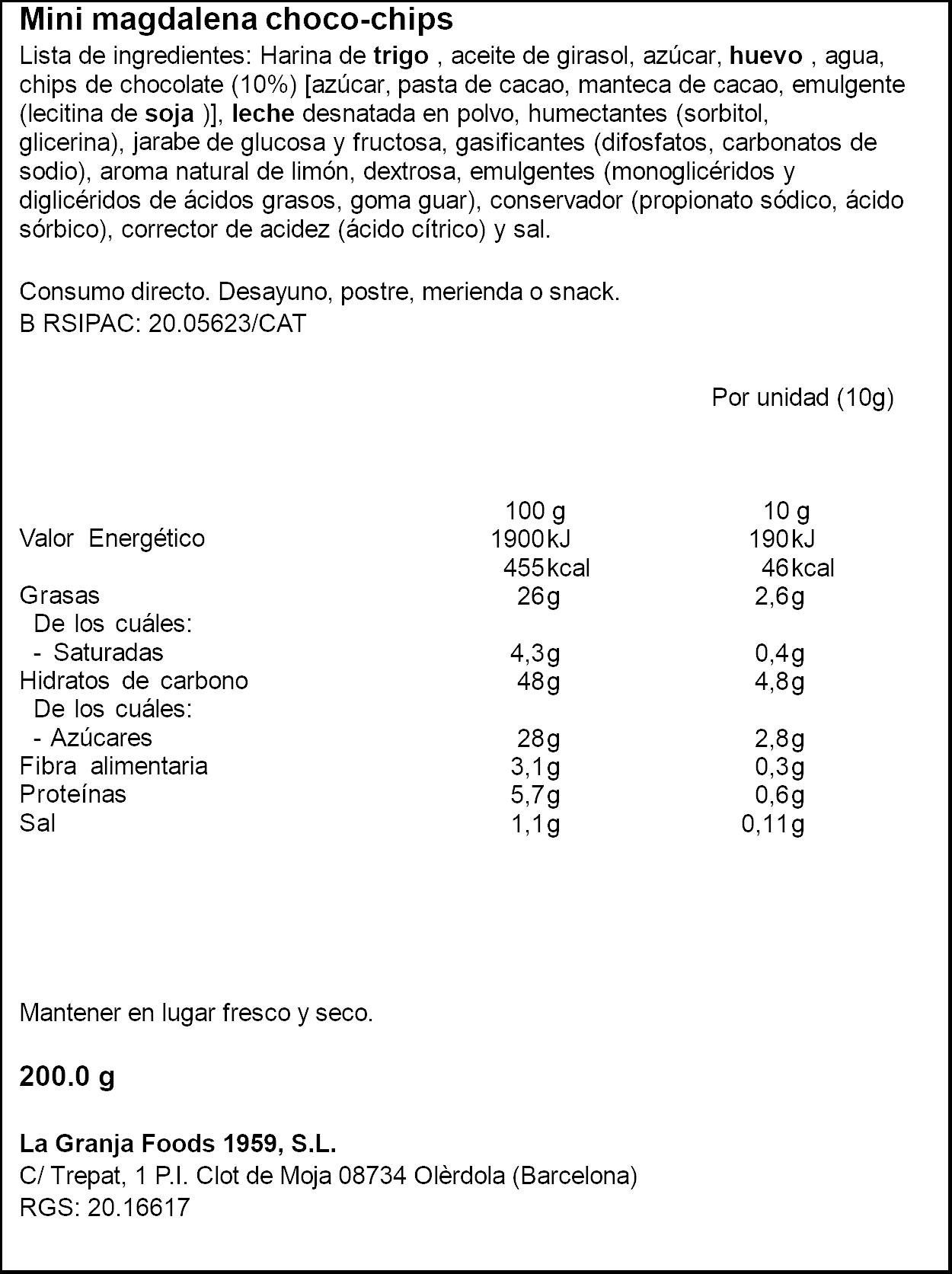 LA GRANJA MINI MAGDALENES PEPITES XOCO 200GR