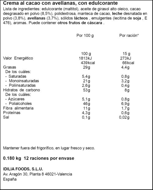 NOCILLA CREMA CACAU SENSE GLUTEN AVELLANA 0% SUCRE 190GR
