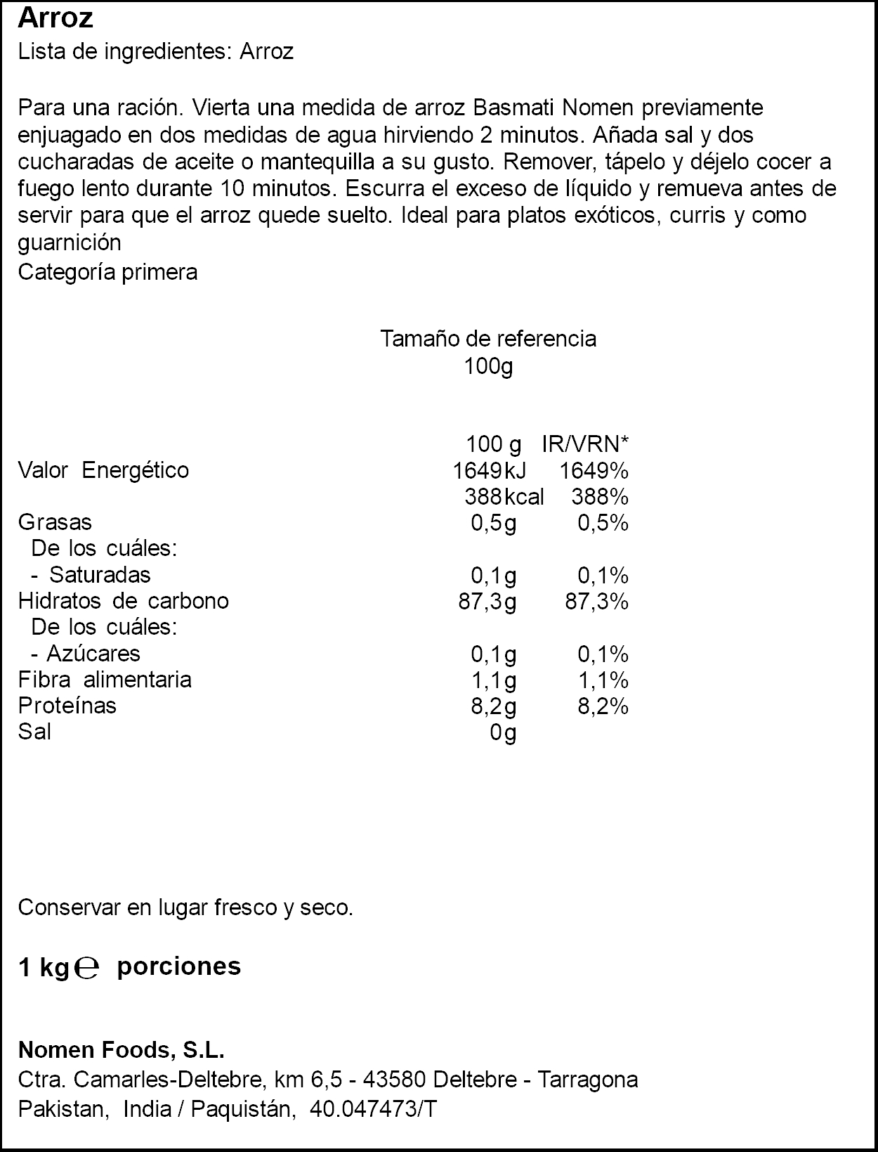 NOMEN ARROS BASMATI BRAJMA 1KG