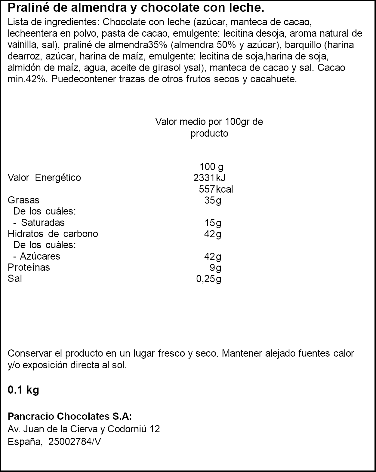 PANCRACIO PRALINÉ AMETLLA 100GR