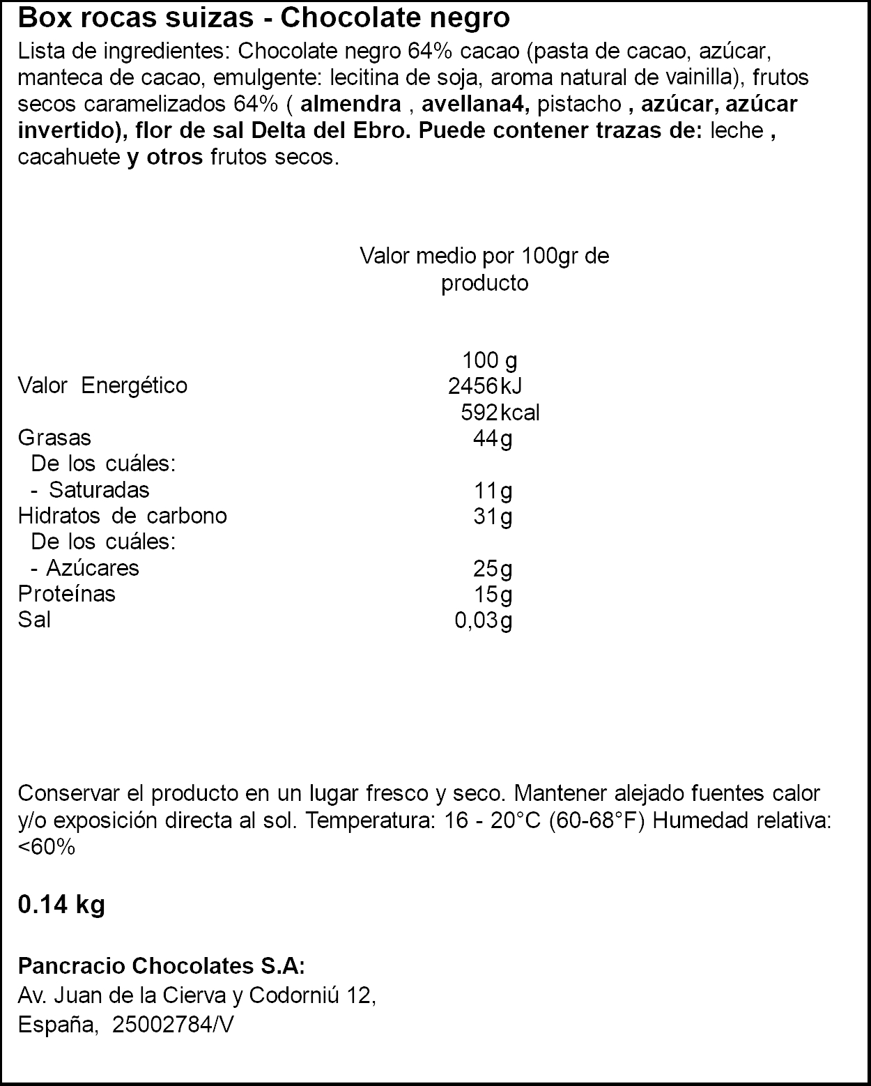 PANCRACIO ROQUES SUÏSSES XOCO NEGRA 140GR
