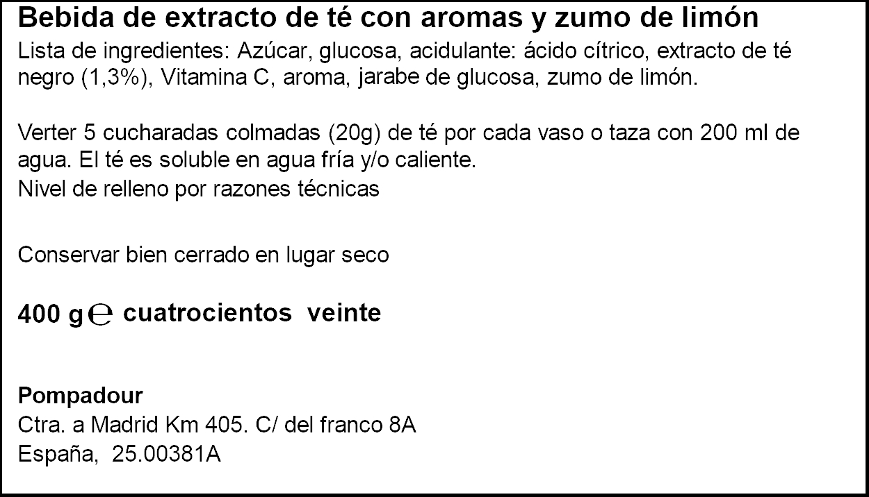 POMPADOUR TE SOLUBLE LLIMONA 400GR