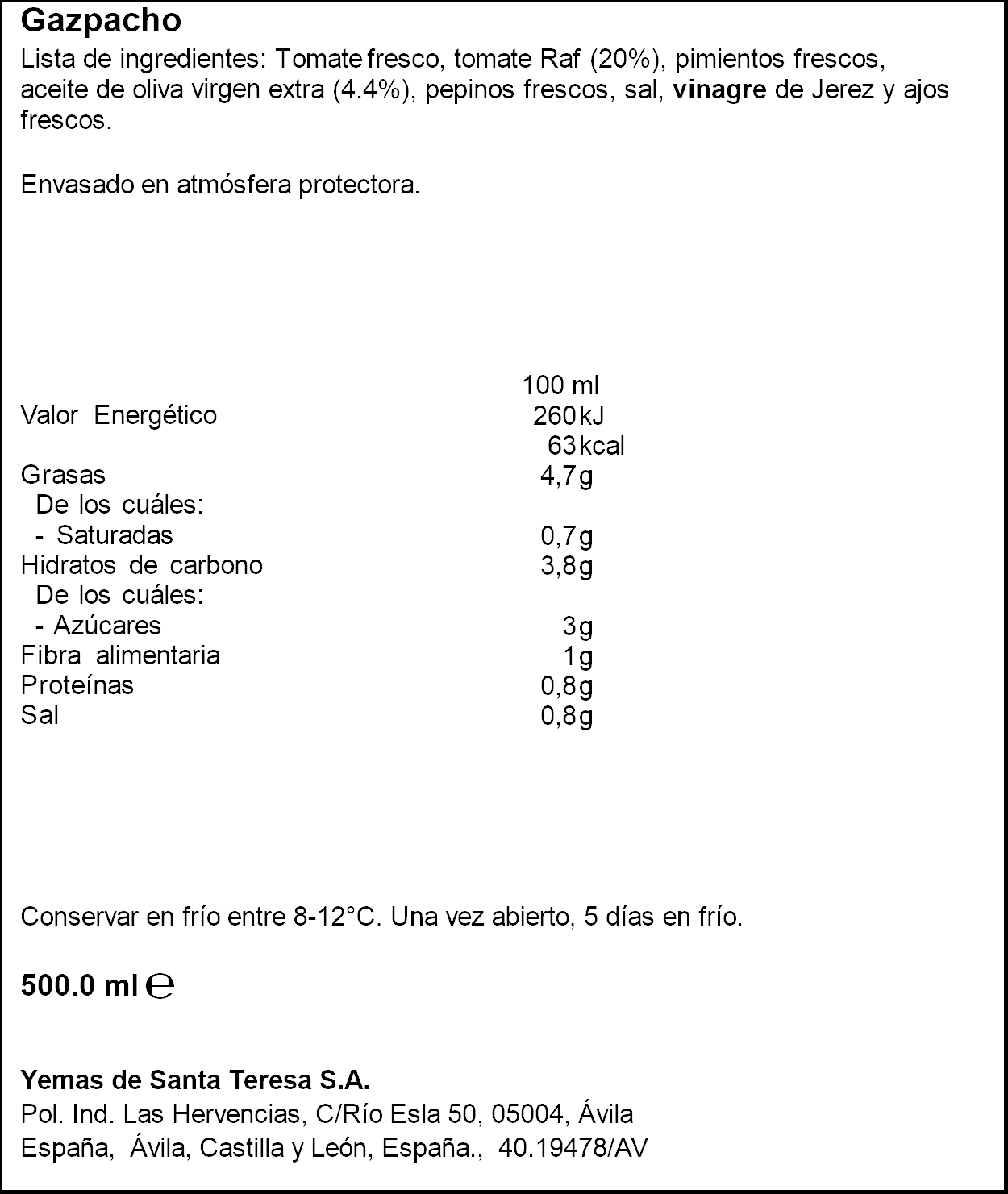 S.TERESA GASPATXO RAF EXTRA AMB OLI OLIVA 500ML