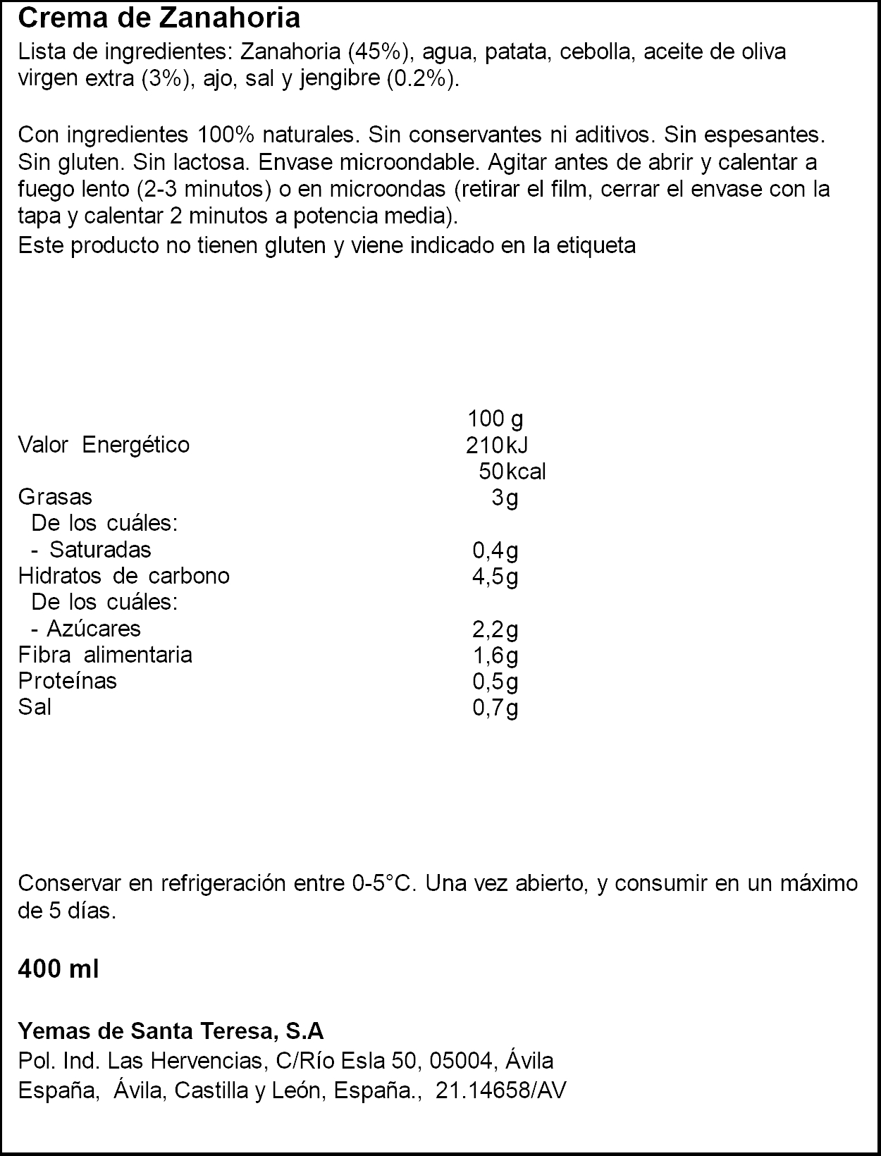 SANTA TERESA CREMA DE PASTANAGA AMB GENGIBRE 400GR