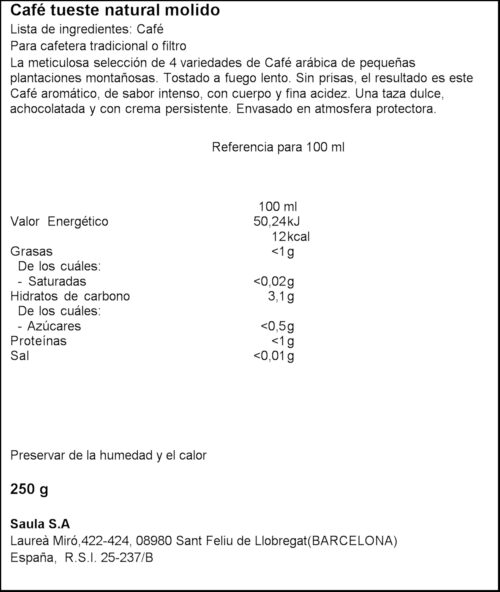 SAULA CAFÈ MOLT PREMIUM ORIGINAL 250GR