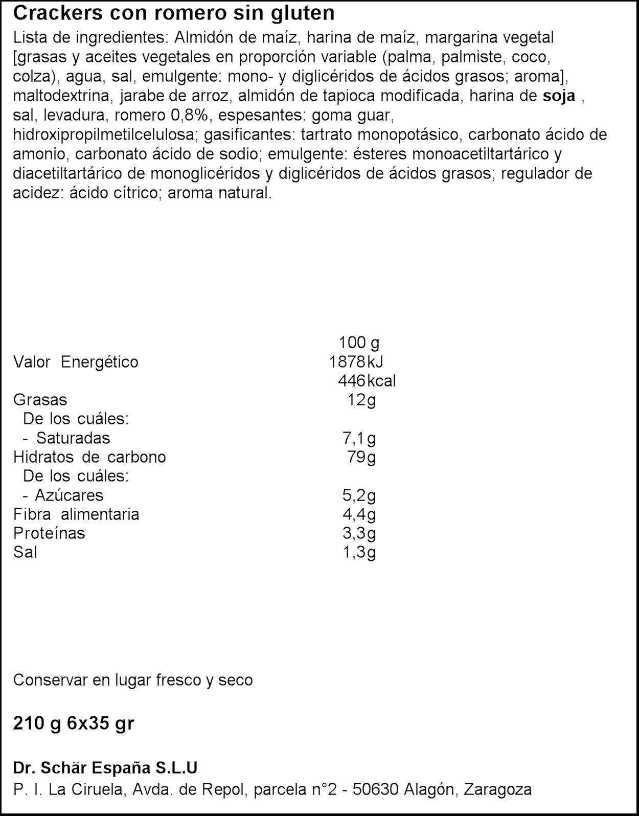 SCHAR CRACKERS ROMANÍ S/GLUTEN 210GR