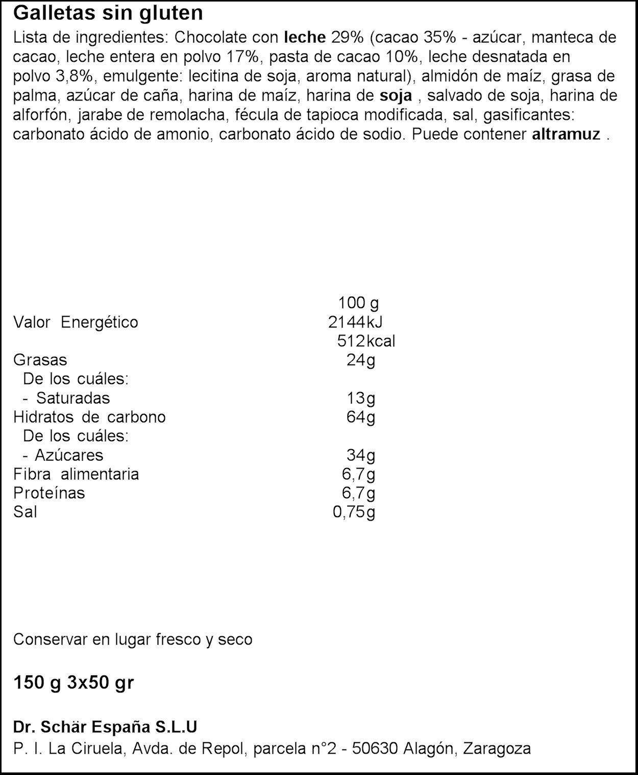 SCHAR GALETES DIGESTIVES XOCOLATA S/GLUTEN 150GR
