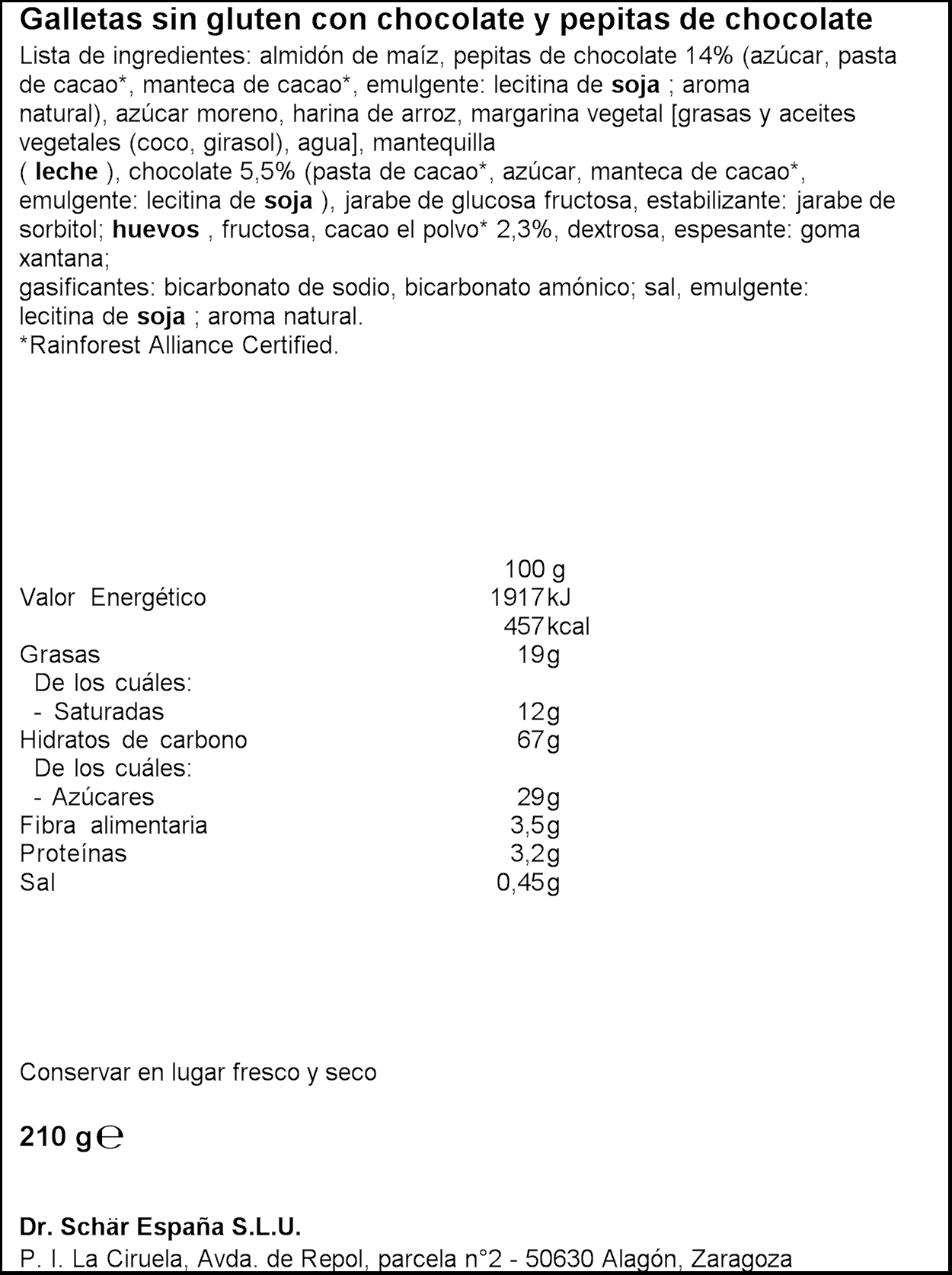 SCHAR GALETES DOBLE XOCOLATA S/GLUTEN 210GR