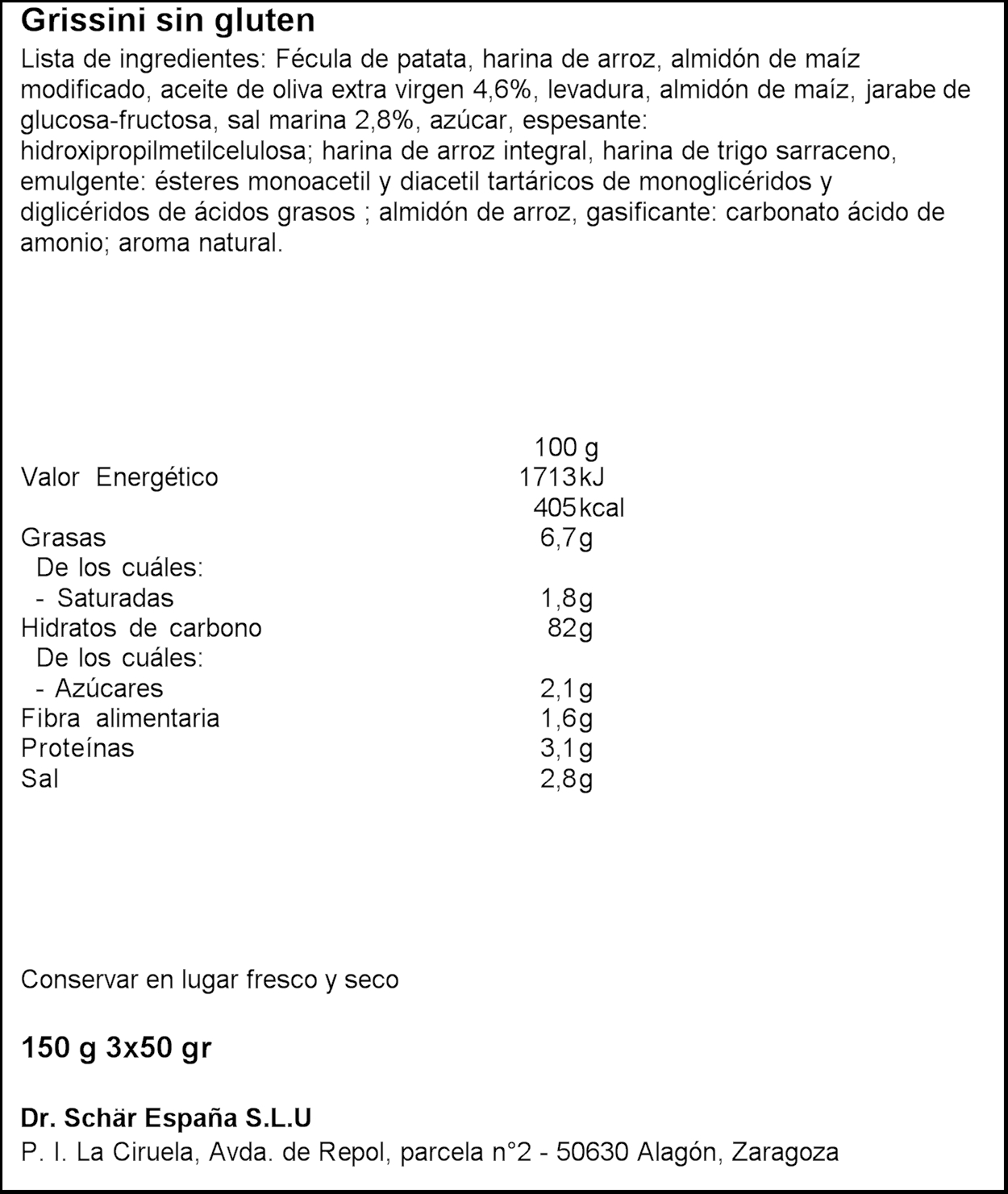 SCHAR GRISSINI ONDULAT S/GLUTEN 150GR