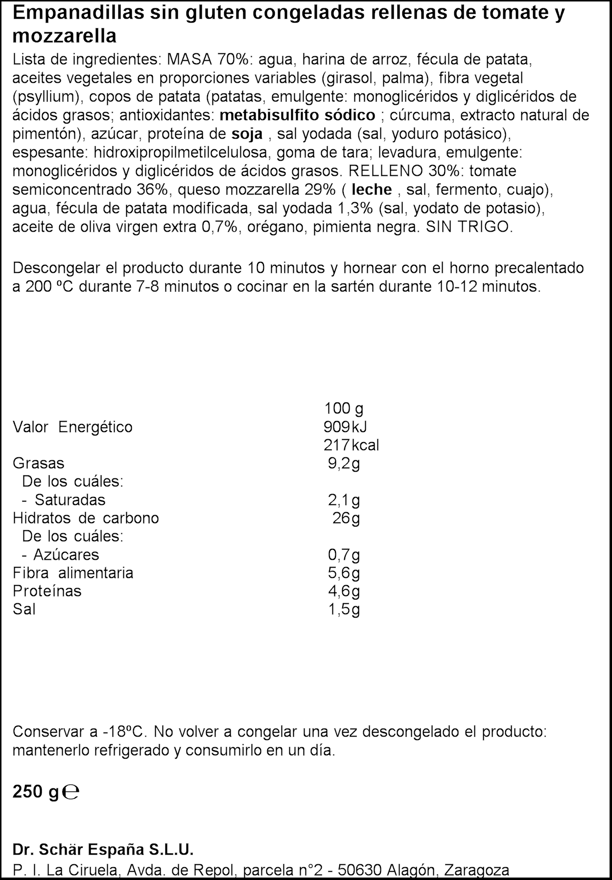 SCHAR MINI CALZONE BITES S/GLUTEN 250GR