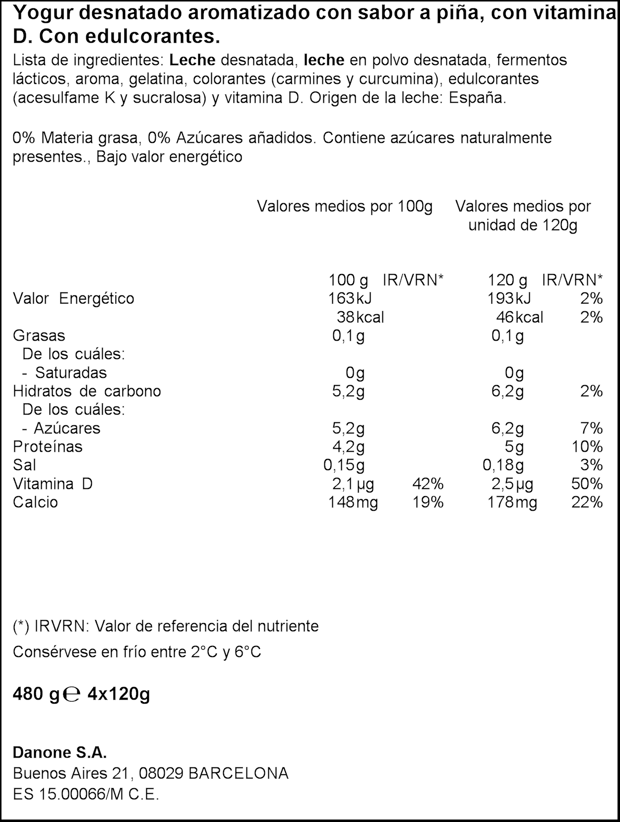 DANONE VITALINEA IOGURT PINYA 0%MG 4X125GR